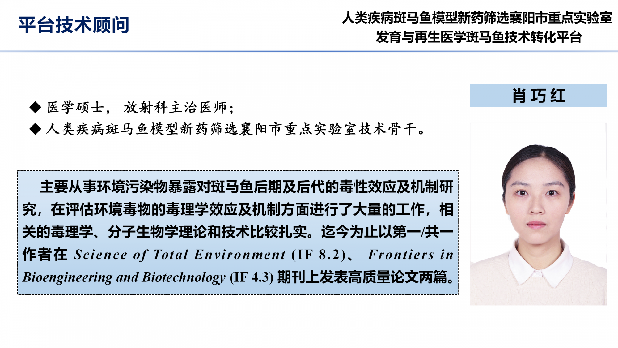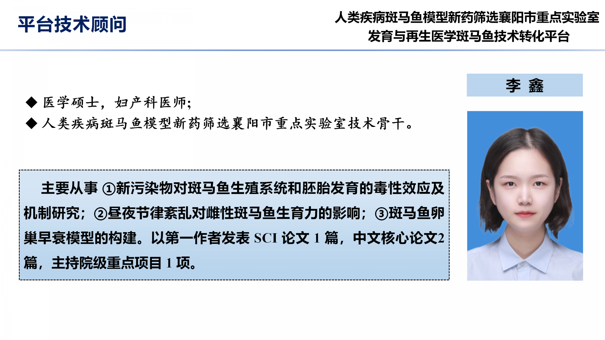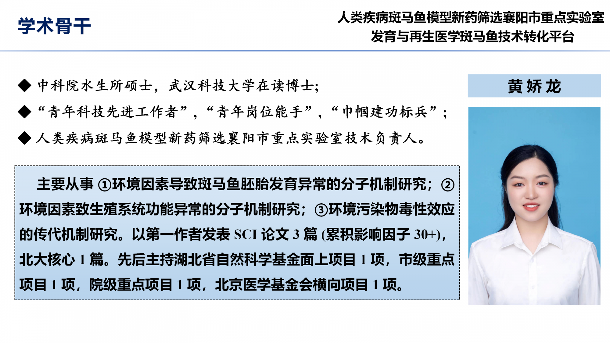 您的位置: 人类疾病斑马鱼模型新药筛选襄阳市重点实验室(发育与再生医学技术转化平台) 技术团队