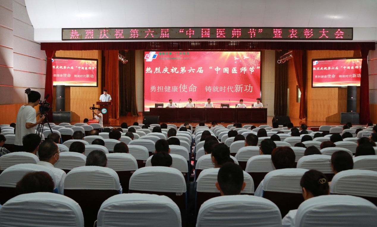 8月18日下午,襄阳市第一人民医院举行第六个“中国医师节”表彰大会。院党委书记廉凯出席并讲话,党委副书记、院长周卫兵主持,在医院领导和中层干部及受表彰医师代表300余人参加。