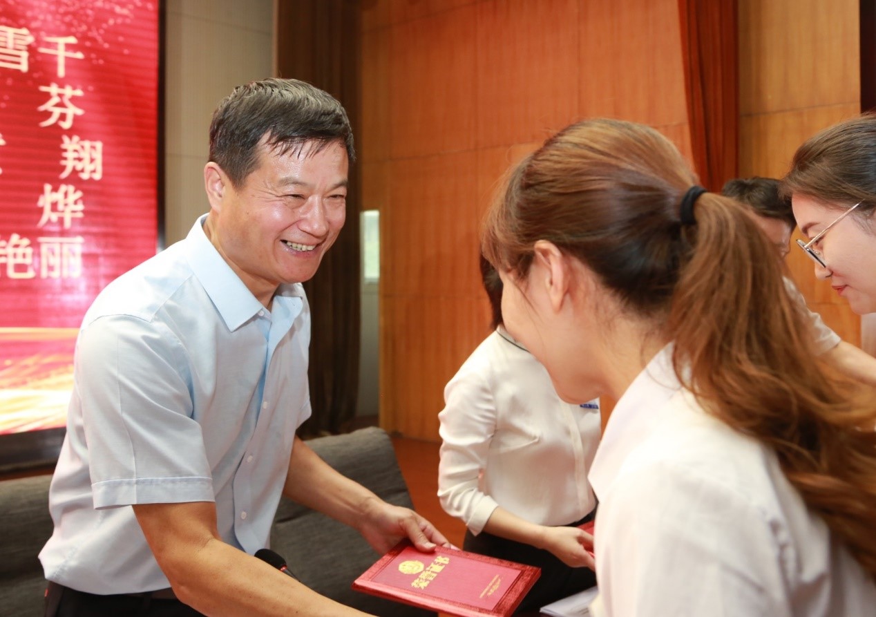 今年8月19日是第六个中国医师节,主题:“勇担健康使命,铸就时代新功”,也是党的二十大召开后的首个中国医师节。廉凯代表医院党委向受得表彰的医师表示祝贺,并向全体医师致以诚挚的问候和节日的祝福。