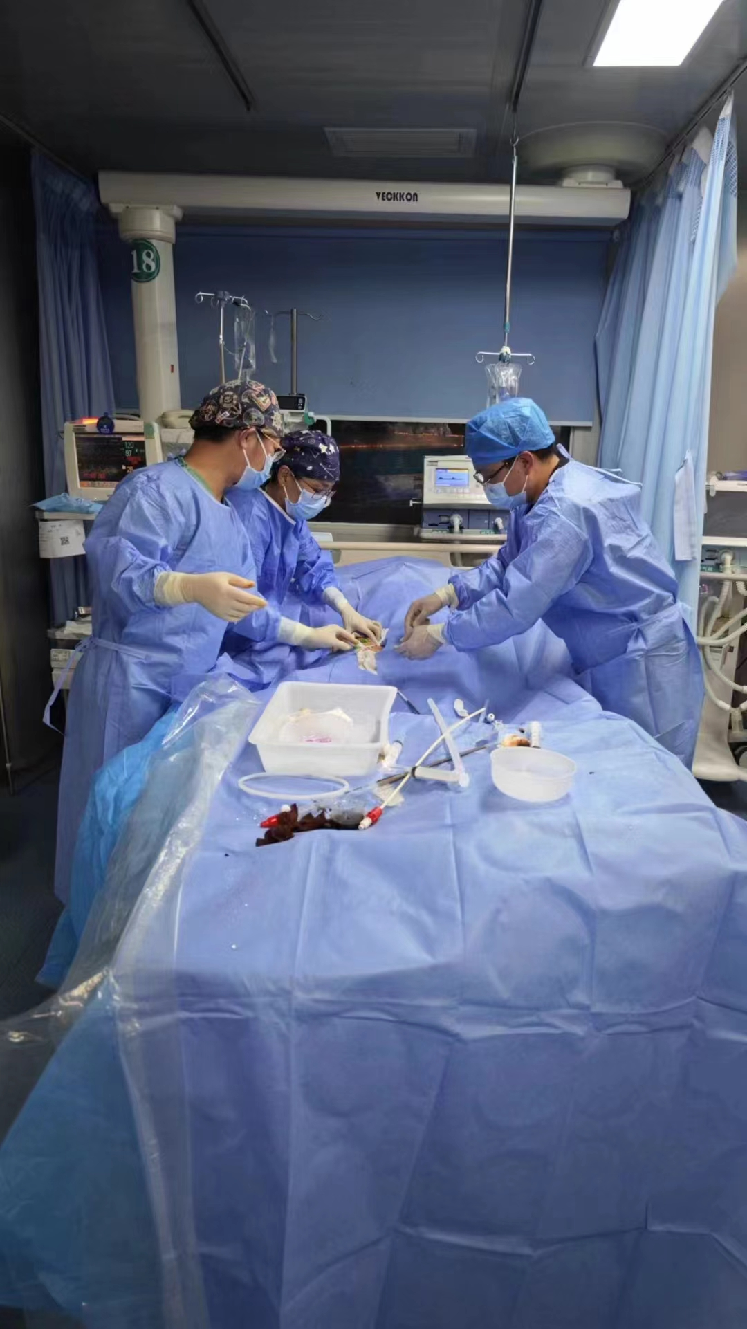 2月28日,ECMO团队成员心胸外科王青涛副主任医师和重症医学科叶柳主治医师,给王先生顺利撤除了ECMO。
