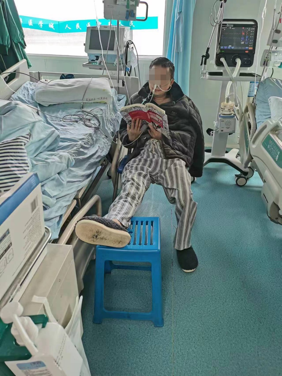随后几天,王先生的肺部感染好转,四肢肌力改善,顺利撤除了呼吸机,重症医学科的医务人员为了让王先生恢复体力,定期安排医务人员陪着他下床活动。
